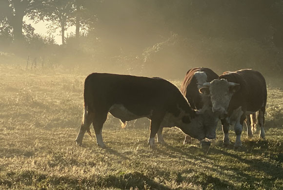 Ursprünglich stammen die Hereford-Rinder aus der Grafschaft Herefordshire im Südwesten Englands. Es sind robuste Rinder mit einer außergewöhnlichen Fleischqualität. Das Fleisch ist durch seine Marmorierung besonders saftig, sehr aromatisch und gesund.